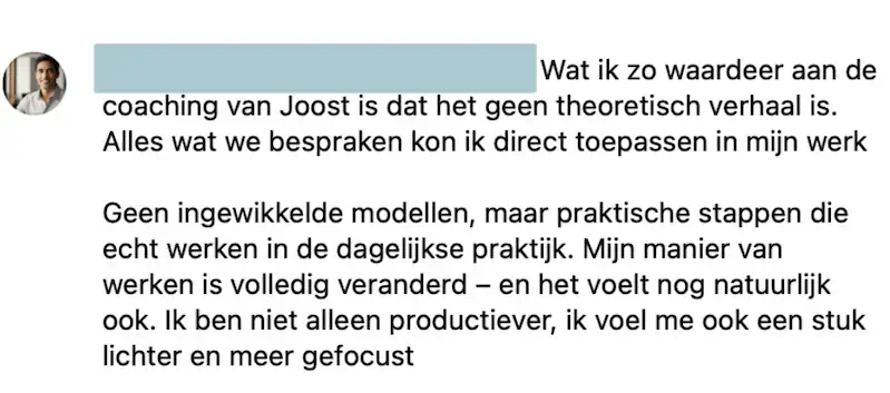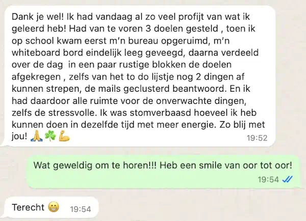 | Snelheid | Stapsgewijs, in eigen tempo | Direct resultaten en een persoonlijk productiviteitssysteem |