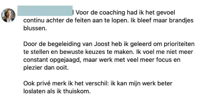 | Voor wie? | Professionals die grip willen krijgen op hun werk | Leiders en ondernemers die direct en effectief resultaat willen |